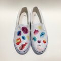 遊びごころのある靴が欲しくて購入させていただきました。バツ印が軽快でかわいいです。私は左右で足幅が若干違います。こちらの靴はニット素材なので足幅に合わせて伸びてくれます。お取引もスムーズでした。