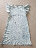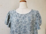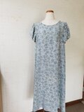 Aラインのワンピースで、ギャザーたっぷりの短めの袖を付けました。