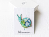 紫陽花カタツムリのブローチ(緑)
