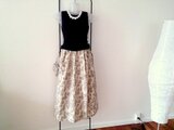★85㎝マキシ★生成り黒い線描の花たち★綿100プリント★ギャザースカート★