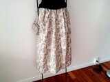 ★黒いペン書きのようなブーケがプリントされた、お洒落なタック入ギャザースカート★マキシもOK★