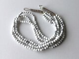 白地に薄墨色の模様が入るハウライトという石の3連ネックレスです