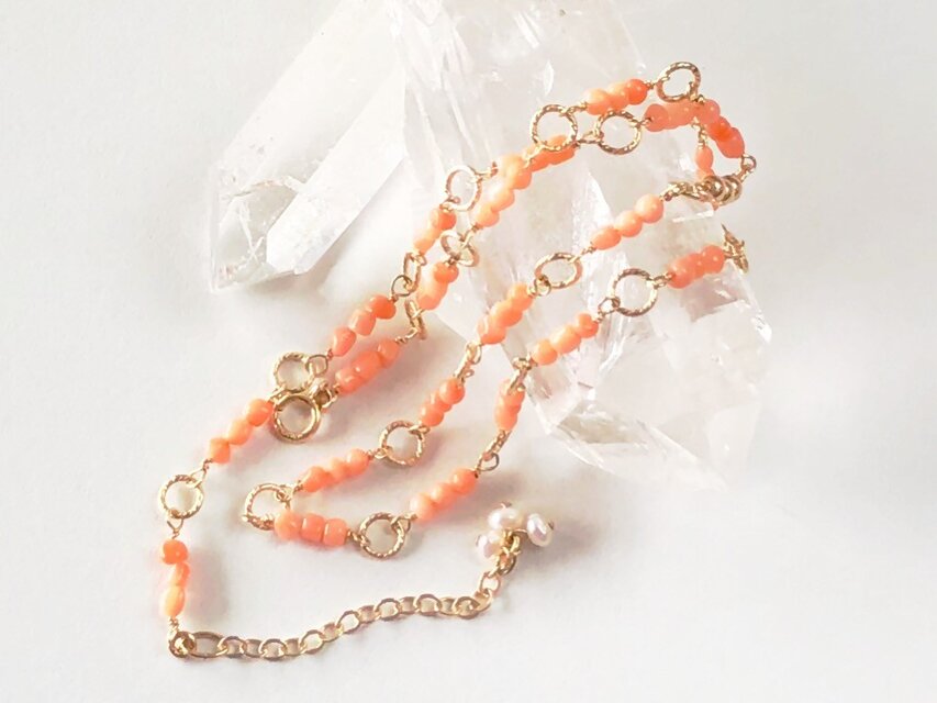 天然色本珊瑚【14KGF】コーラルの首飾り✩✩オレンジピンク