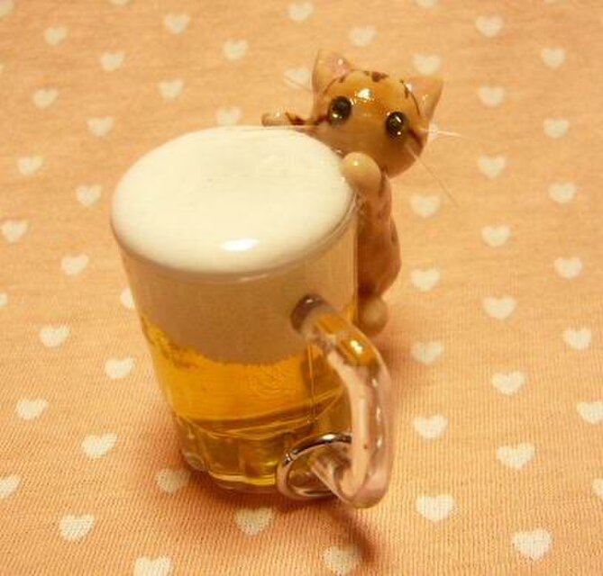 にゃんこのしっぽ〇にゃんこの生ビール〇ベンガル♡ブラウンタビー〇ストラップorキーホルダー