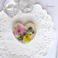 庭のお花をドライフラワーにして、ハートモチーフを作りました。