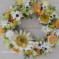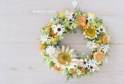 ひまわりと白い花々のリース:ひまわり オレンジと白 小花