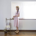 ┗たっぷりプリーツが気になるお腹周りと太ももをスッキリと見せてくれます。綺麗なAラインが完成するので、スタイルが良く見えるという嬉しい効果も。下っ腹の膨らみをカバーしてくれるので、妊娠中の方のご利用もあります。