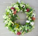 白いデージーはひかえめに 全体にグリーンが多めの爽やか系リースです