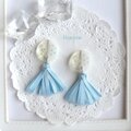 爽やかなサックスブルーのタッセルと合わせて可愛らしいイヤリングにしました。