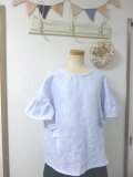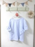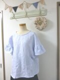 ピンストライプ リネン100%の生地でフリルブラウスを作りました。