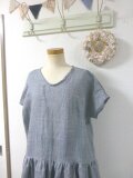 グレンチェックリネン100%生地 たっぷりギャザーフレンチスリーブワンピース