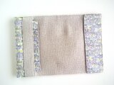 リバティの人気生地、Jenny's Ribbons ジェニーズリボンズ(ピンクグレー)とハーフリネンの生地で文庫本サイズのブックカバーを作りました。