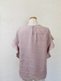ドロップショルダーの袖ぐり下から16cmのところまで、広めのフリルが付いています。