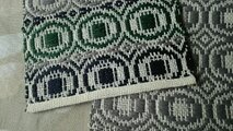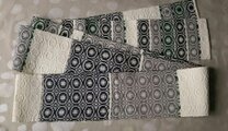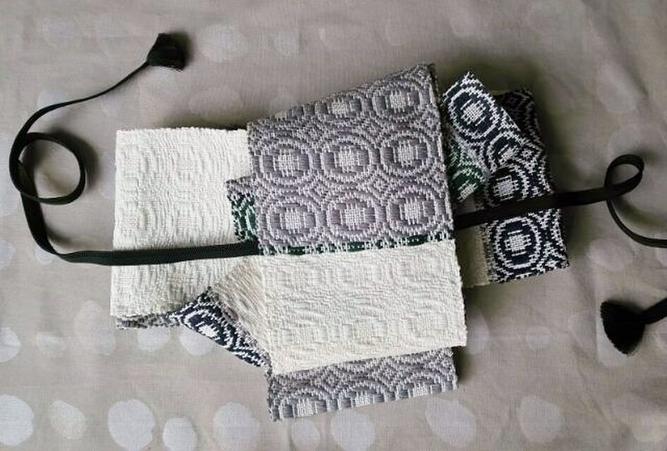 手織り半幅帯/リネン×ヘンプ/まるまる 白×紺×グレー×緑(試作品)