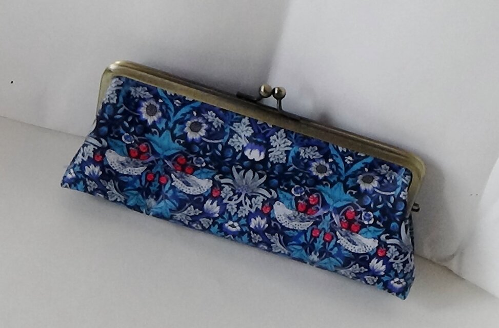 裏生地にブルーのキルティング生地を使いましたので少しふっくら感もありメガネケースとしても使用出来ますよ