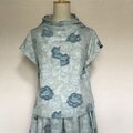 単衣の十日町紬の着物を解き洗い張りし、ボトルネックブラウスと、タックギャザースカートを縫いました。