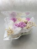綺麗なラベンダー色の薔薇が合わさり、透明感のある女性らしイメージです。