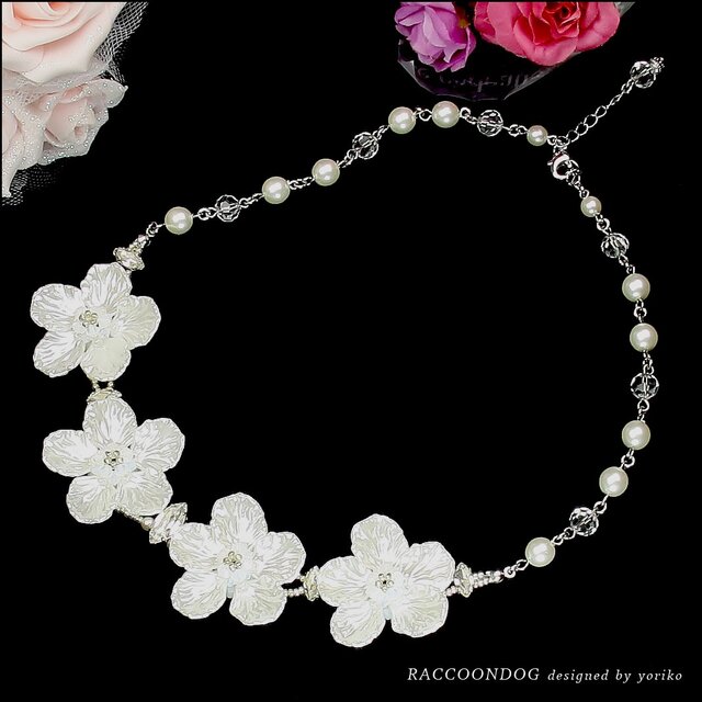 ビーズ,ネックレス,コスチュームジュエリー,グラス,ビーズアクセサリー,ガラス,白,パールホワイト,ホワイト,スワロフスキー,パール,花,クリスタル