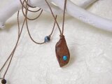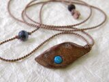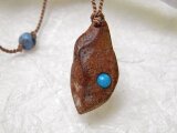 樹皮から削りだしたトップに、ターコイズを合わせました。