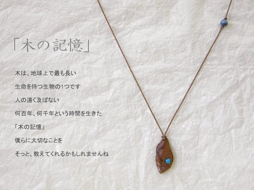 自然に剥がれ落ちた「木の記憶」をいただいて、ネックレスに仕立てました。