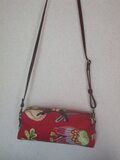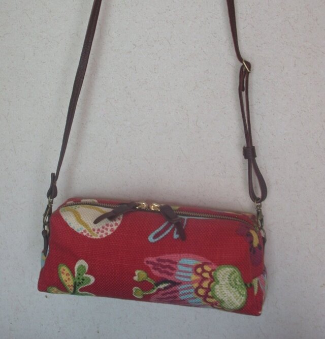 とても生地の柄がかわいいです☆中の生地もスエードで厚みもあり安心感があるしっかりしたお品だと思います。 長財布や小さめの折りたたみ傘など見た目よりもたくさん物が入ります。すごいですね! お気に入りのポーチ鞄となりました。 購入良かったです。