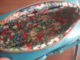 内装のリバティ地に綿芯を貼っているので、ふかふかとクッション性があります。