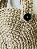 円型の編地2枚とマチを丁寧に繋いで作った麻ひもの手提げバッグです。
