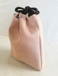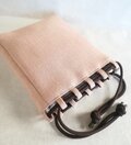 当製作所の職人による草木染め手織りの紬地を使用した手提げ巾着です。