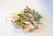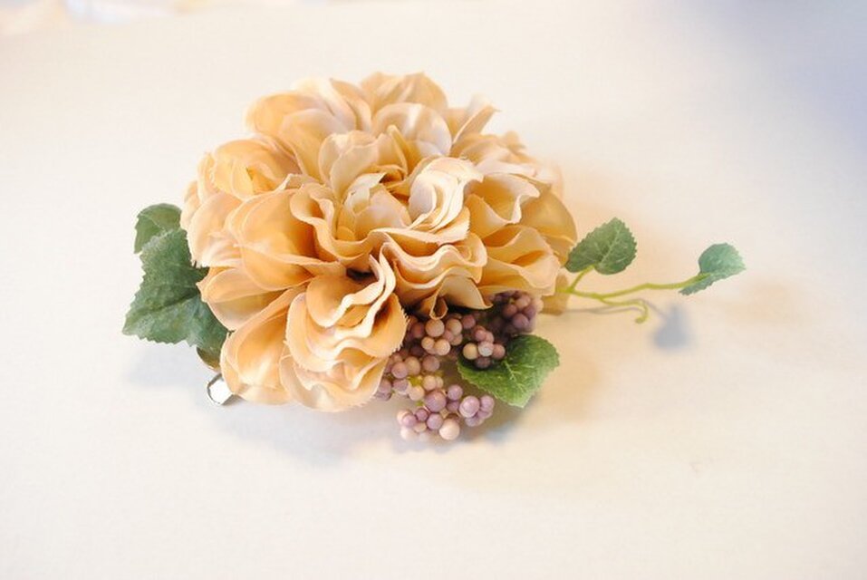 大きい牡丹に紫の実と葉っぱをあしらいました。