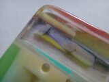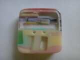 ポリエステル樹脂出色を作り流し固め、カットしてまた流し込みという作業を5~10回繰り返して作ったボタンです。同じ柄は二つとありません。