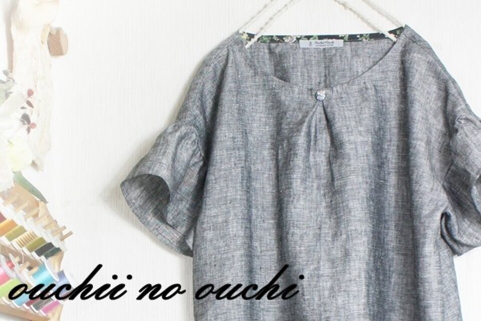 柔らかくしなやかなしっとりしたダンガリーブラックリネン100でお作りしましたラッフルスリーブワンピースです。