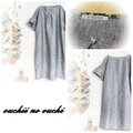 ドロップショルダーの身頃にギャザーの可愛いお袖がついたワンピで