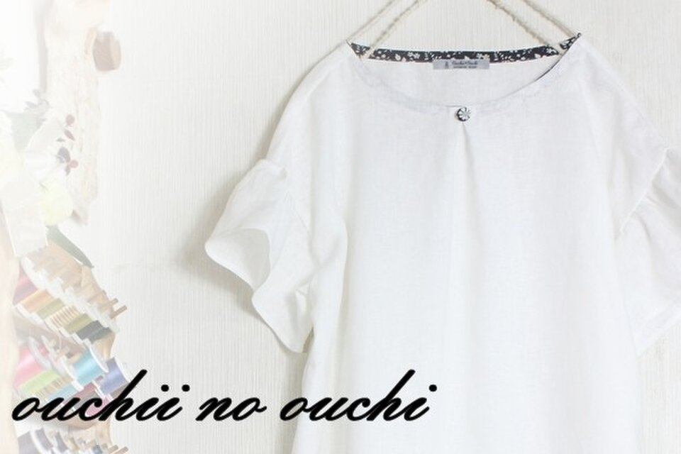 柔らかくしなやかなしっとりしたホワイトリネン100でお作りしましたラッフルスリーブワンピースです。