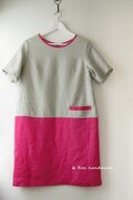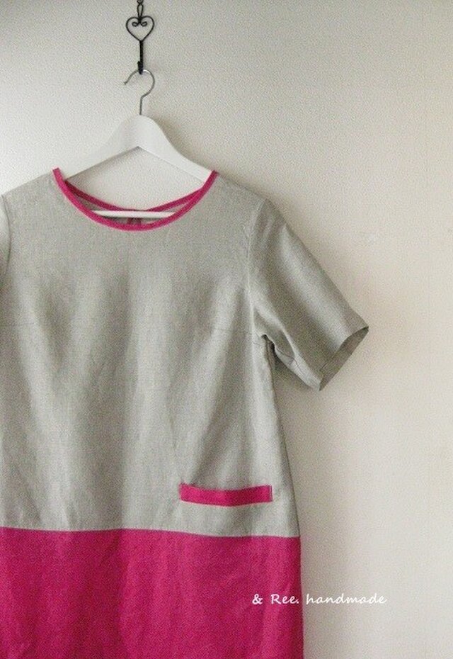・中厚の生成リネン生地とビビットなピンクを使ったシンプルなワンピースです。