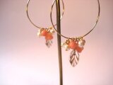 ピンクのお花と透明の葉っぱがゆらゆら揺れるビーズお花ピアスです。