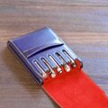 タリアンレザーなどを使い、駒合わせ縫いと言うミシンなどの機会では縫えなく、手縫いでのみ仕立てられる5本挿し万年筆ケースです。