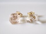 シャンパンカラートパーズ&ダイヤモンドクォーツの原石ピアス/Pakistan 14kgf