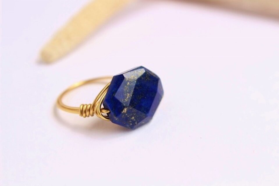 ラピスラズリ フラットタンブル Wire Ring