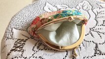 古布の状態の良いところ・柄のきれいなところをとって、がまぐちをつくってみました。