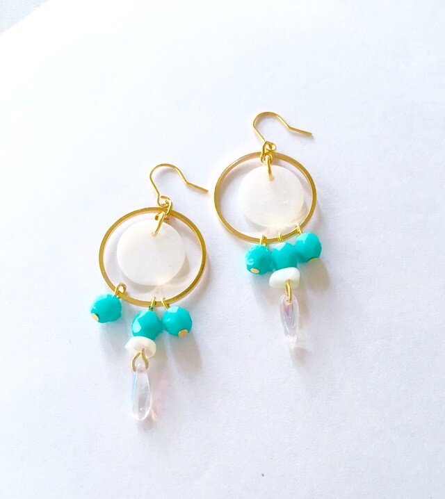揺れるピアス/ミント色/ホワイト/夏コーデ/貝/春/夏/水着/浴衣/海/プレゼント/グリーン/Blue/丸い/マーブル/きらきら