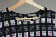黒地に赤チェックと黄色チェックとグレーがブロック状に織られています。