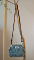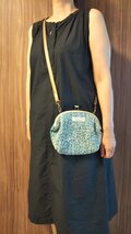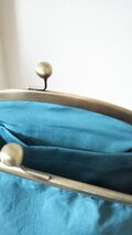 京都の糸屋「アヴリル」オリジナルの糸を入れて、一から手織り機で織り上げた生地を使用した、がま口バックです。
