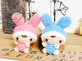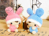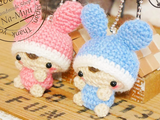【受注制作】あみぐるみ★うさ耳帽子のベビーS・白縁パステル(S)/ボールチェーン