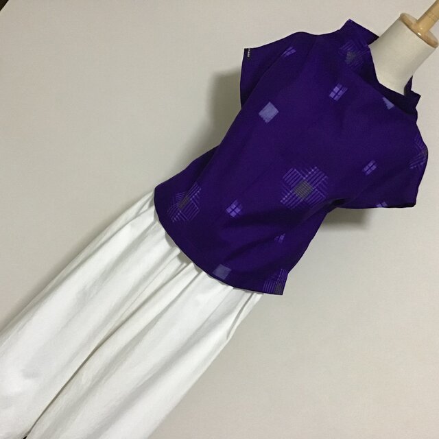 「 847 着物リメイク ブラウス 銘仙 紫色 LLサイズ 」