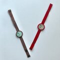 刺繍糸やリボン、ビーズでできたかわいい時計にみたてたアクセサリー