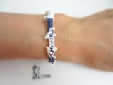 紺と白のワックスコードにかわいいシェルのビーズを編みこんで、