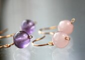 天然石ローズクオーツを使ったシンプルな一粒ピアスです。