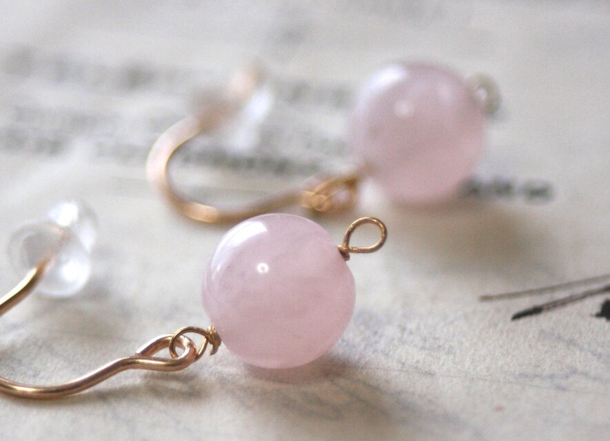 【14kgf】天然ローズクオーツ ピアス