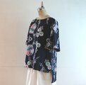 手まり模様の浴衣生地で、ゆったりな身幅のブラウスを作りました。幅広の袖で気になる二の腕をさりげなくカバーします。