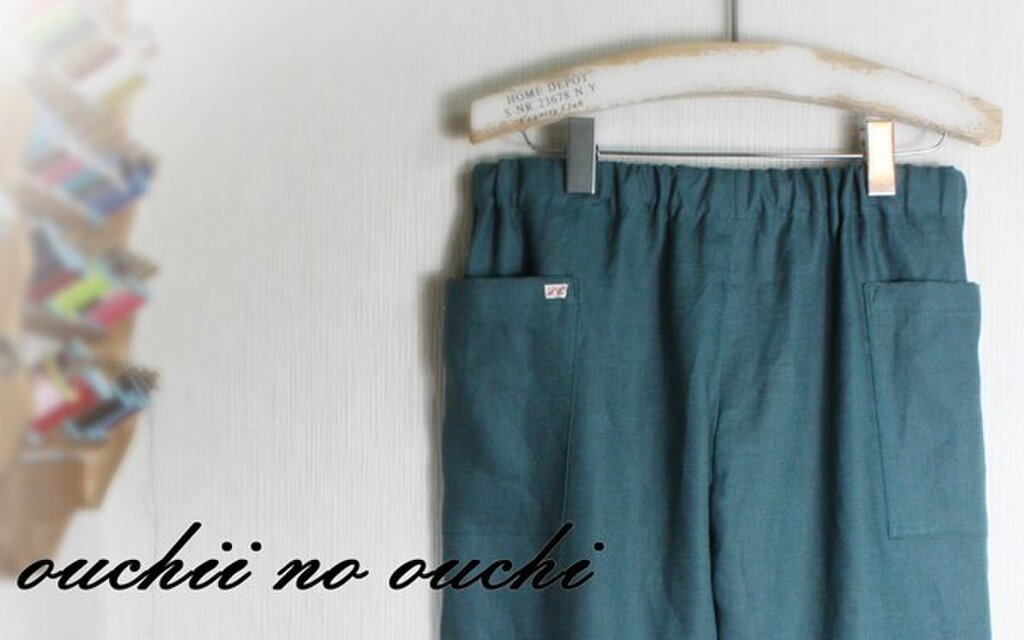 しっとりリネン100ビリジアングリーンでサルエルパンツをお作ります。